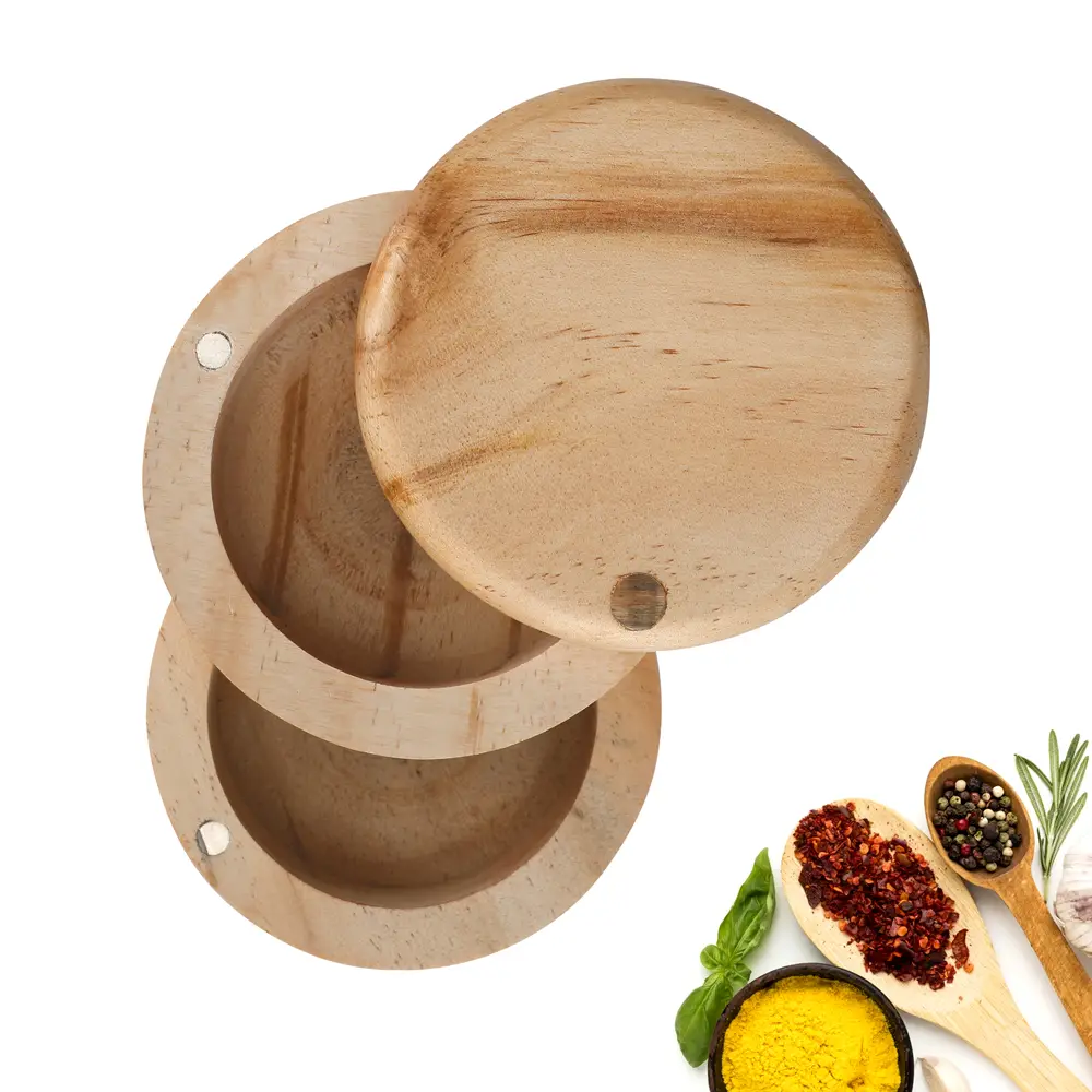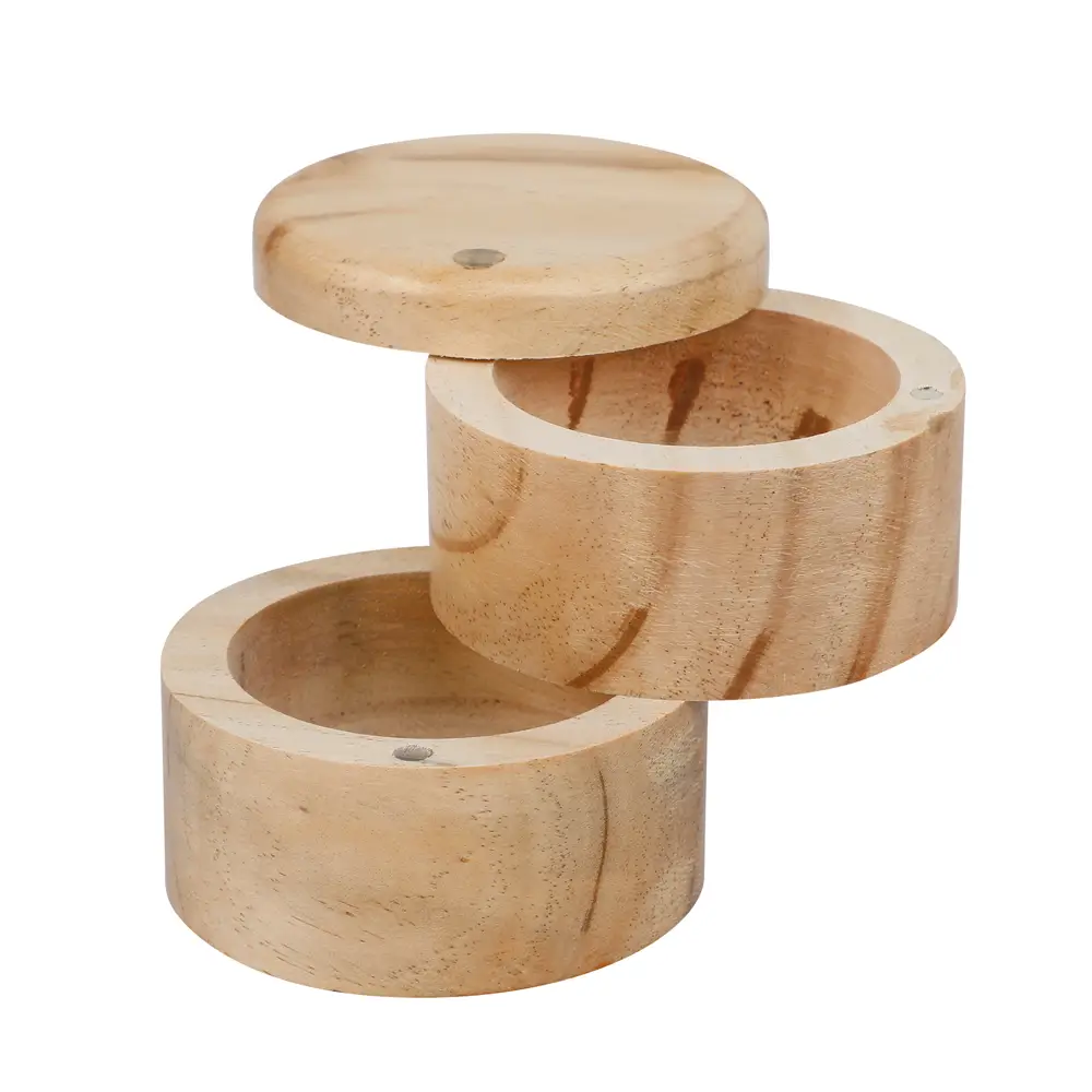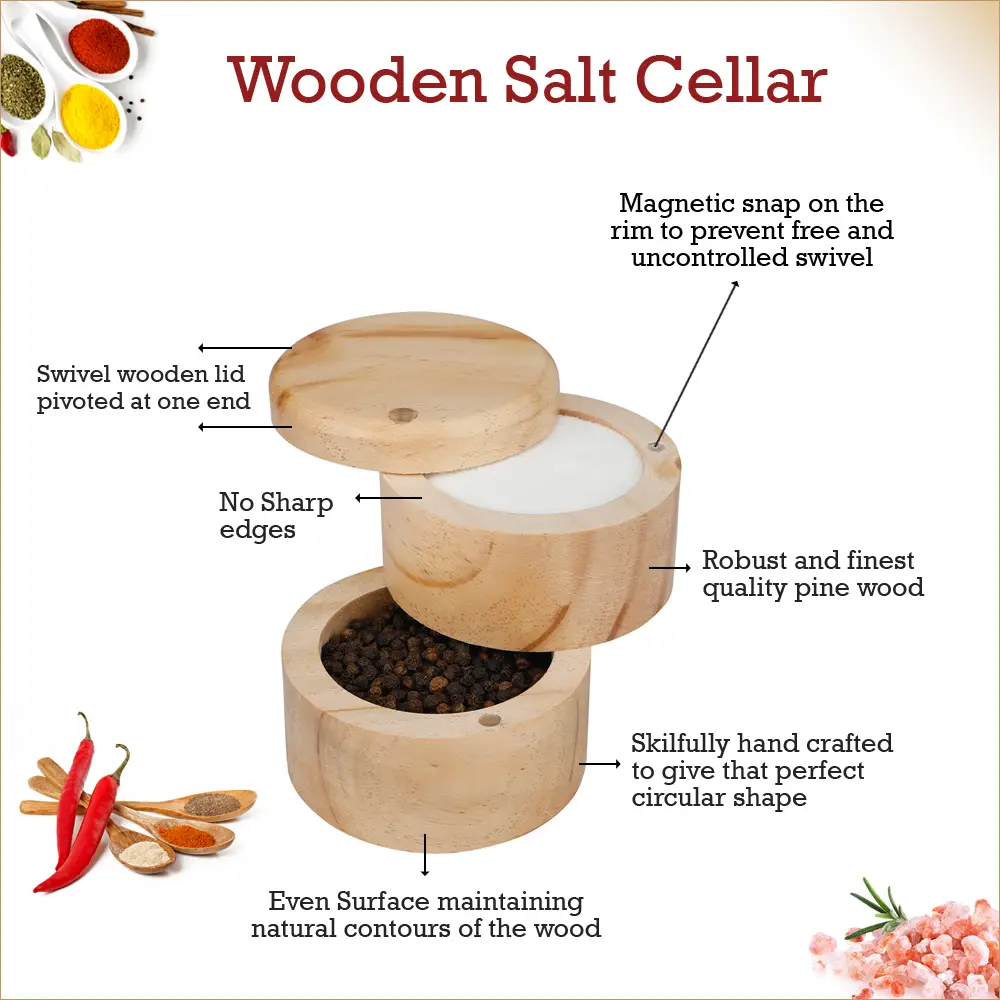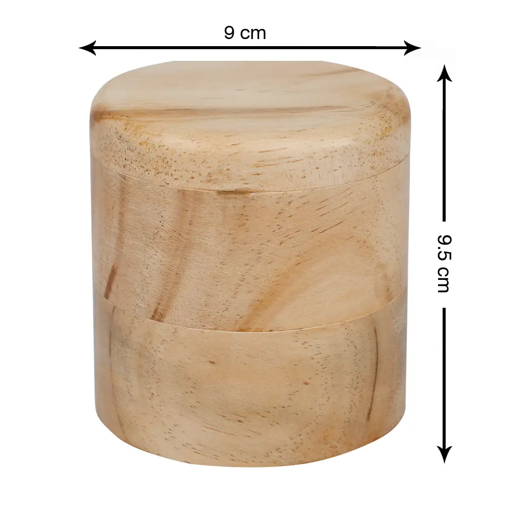 This kitchen essential storage container is skillfully handcrafted for that perfect cylindrical shape. The surface of this sustainable wood container is even with no sharp edges or splinters. Being evenly trimmed, it successfully maintains the natural wood contours. The spice box has a robust swivel lid with a magnet lock to lock spices and their aroma inside. The holding magnet is inserted inside the rim on one end and slides sideways for effortless movement and easy access.