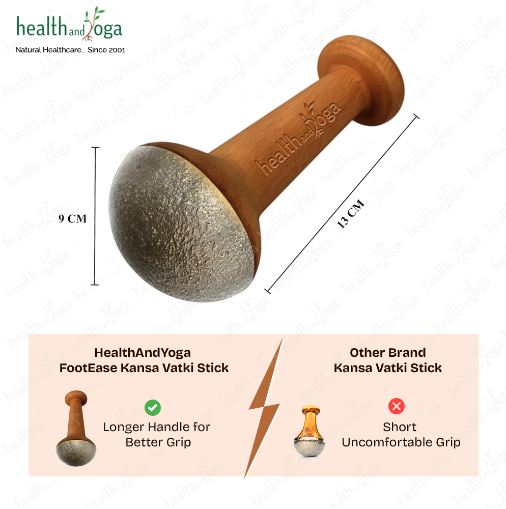 FootEase Kansa Vatki with Wooden Handle has a hand-carved polished wooden handle that provides a firm grip. It is easy to use for self-massage as well as a great tool for therapists. The handle allows to put more pressure with less effort and gives effective results.