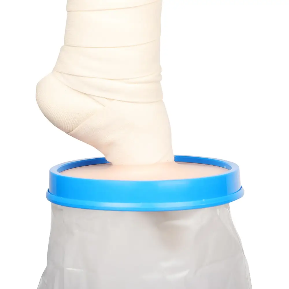 This cast cover is a waterproof, easy-to-use, reusable protector. It is a self-sealing, self-supporting product that prevents the penetration of water to plaster casts and bandages on legs during bathing. It is simple and comfortable to use and will last through the average user’s duration of treatment. Waterproof cast protector allows you continue to enjoy your life while healing, including participating in activities like swimming. It is made of PVC, rubber and poly propylene that makes it highly durable and resistant to abrasion. It comes with a rigid ring and a stretchable diaphragm to form an automatic water seal and accommodate any size casted leg. The anatomical shape allows free foot movement and easy pull on application. The body of the cast is flexible and non-porous to prevent knots, ties, accumulation of pollutants and water retention. There are two different length of the leg cast cover, one is 24 inches in length that probably covers an adult’s half leg and the diameter of the tight seal ring is 8" and the other is 13 inches in length that covers foot and ankle, diameter of the tight seal ring is 8". It prevents infection from moisture exposure.