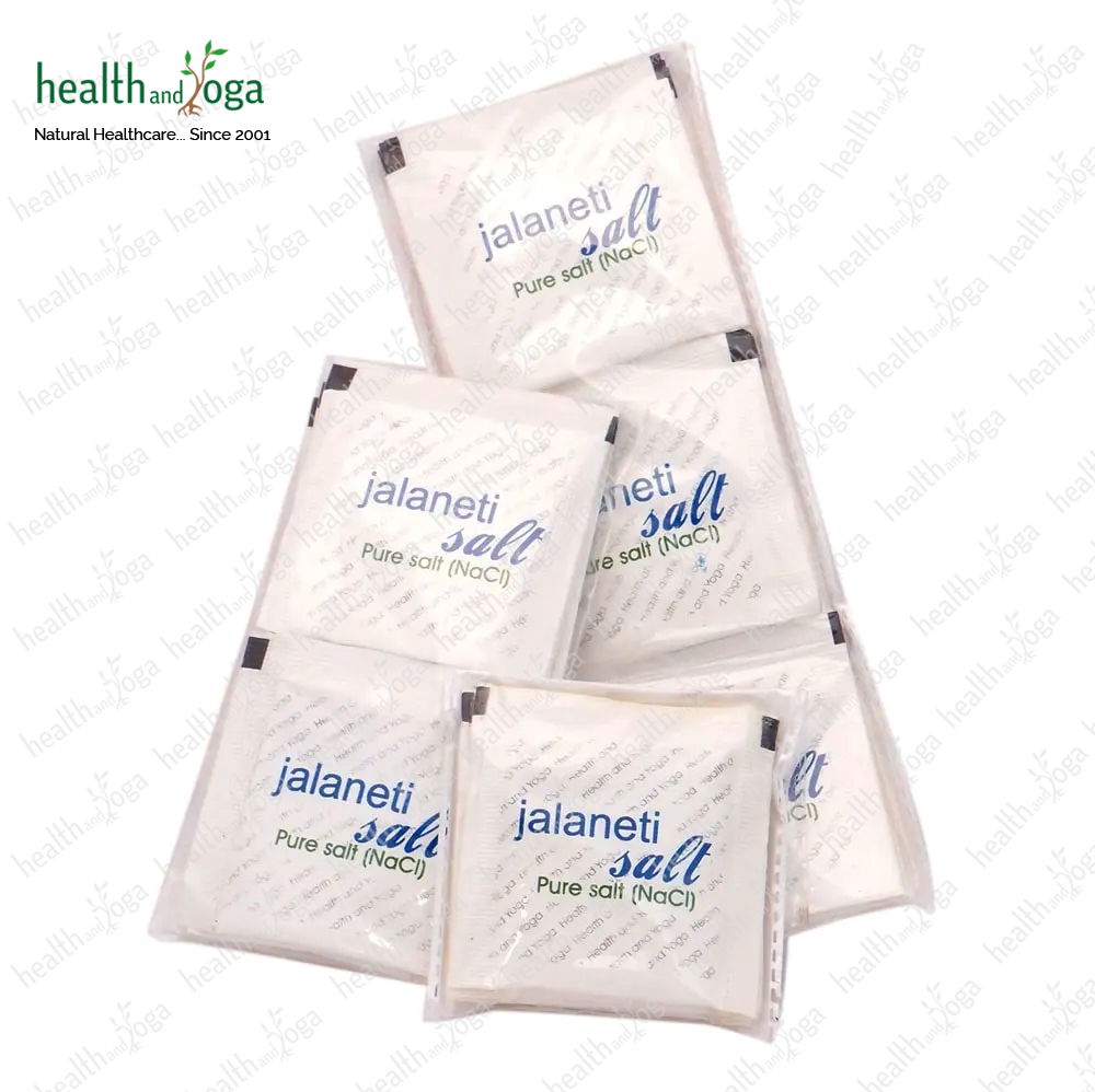 For Neti Practice with best results- Make a saline solution of One packet HealthAndYoga Neti Salt (5 grams) in SteloKleen Neti Pot (500 ml water).